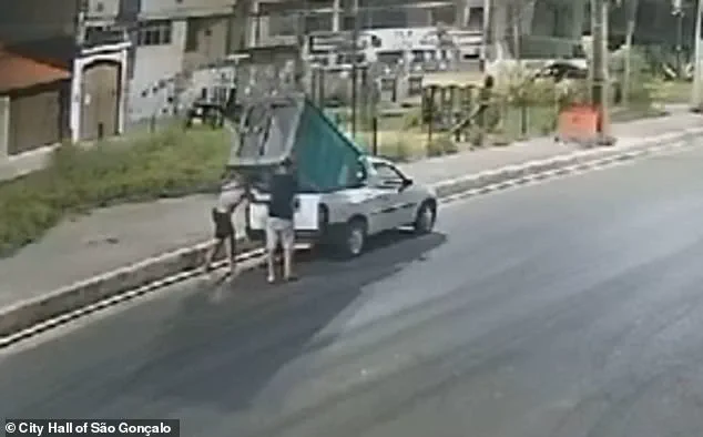 A pair of brazen thieves were recently caught on camera as they committed a peculiar crime: stealing a portable toilet from a roadside rest stop in São Gonçalo, Brazil, near Rio de Janeiro. The incident, which occurred on February 13, was caught on camera and has since been made public, revealing the unique and humorous actions of these suspected criminals.