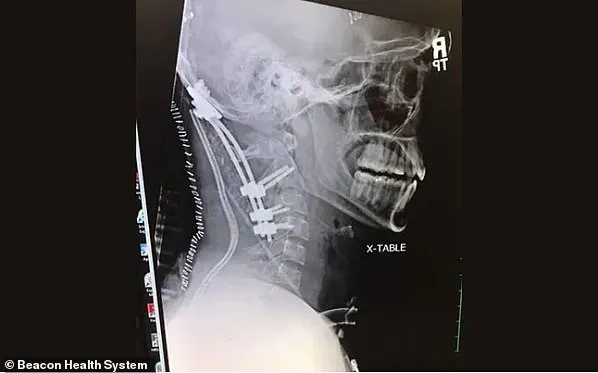 The impact was so violent that the ligaments connecting the skull to the spine were severed, leading to what medical professionals refer to as ‘internal decapitation.’ Despite sustaining this rare and often fatal injury, he remained conscious throughout the ordeal.