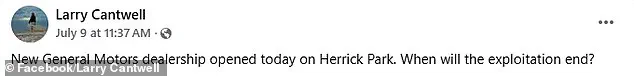 Cantwell, a local resident and critic of the dealership event, warned that this could be the beginning of a broader trend. ‘What’s it going to be next?