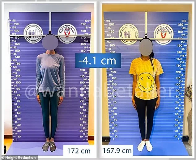 In July 2024, an unidentified American woman underwent a controversial procedure at a clinic, reducing her height by 4.1cm—from 172cm to 167.9cm.