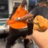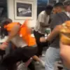 The chaos continued as another man in an orange shirt and sneakers delivered punches to a person already on the ground.