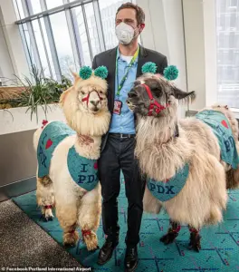One local, @cheryl_v_w, posted an image of the therapy llamas—wearing light blue deely boppers and matching saddles—with a sarcastic caption: ‘Imagine the look on the faces of the troops landing in Portland when they’re being greeted by the therapy llamas at the airport.’ The post quickly went viral, becoming a symbol of the city’s defiant response to the federal overreach.
