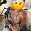 Photos from the hospital show DancingMoto with severe road rash on his left shoulder and arm, a neck brace securing his spine, and a visible determination in his eyes despite the pain.