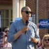 Jay Jones, who is running to become Virginia’s attorney general in 2025, speaks to the audience during Abigail Spanberger’s bus tour stop at Stacy C.