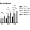 The serum also produced a 101 percent increase in hair thickness, nearly doubling the density of the treated hair compared to the control group.