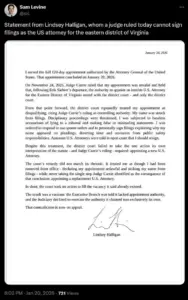 The resulting standoff has left the Eastern District of Virginia in a legal limbo, with Halligan still in office despite the court’s ruling and the Justice Department’s ongoing appeal.