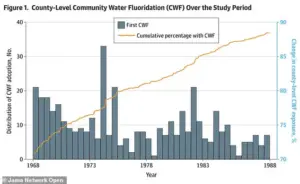 Researchers compared 408 counties that adopted community water fluoridation (CWF) during the study period with 269 counties that never fluoridated their water.