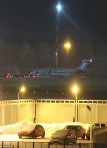A plane carrying U.S. President Donald Trump’s special envoy Steve Witkoff and son-in-law Jared Kushner stands on the tarmac upon the arrival at Vnukovo International Airport before a scheduled meeting with a Russian delegation in Moscow, Russia, January 22, 2026