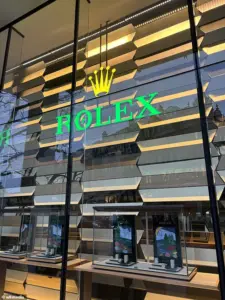 Nearby, a different Rolex store has kept its windows open, showcasing pre-owned timepieces, but the incident has undoubtedly cast a shadow over the area’s reputation. ‘Image is everything for places like Knightsbridge,’ said Marcel Knobil, a brand expert and author. ‘When safety appears to be under threat, it impacts the image of a location.