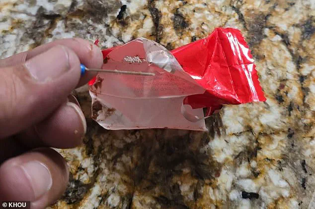 Jeremy Partin, a local father who has attended the parade with his family for years, described the unsettling moment when his 18-year-old daughter discovered a sewing pin embedded in a KitKat bar. 'She told me, "Good thing I was the one who grabbed it — look at this,"' Partin recounted to Khou 11. 'And sure enough, you could clearly see the pin sticking out of the bar.' The pin, he noted, was deliberately placed under the wrapper's flap, suggesting a calculated act rather than an accident.