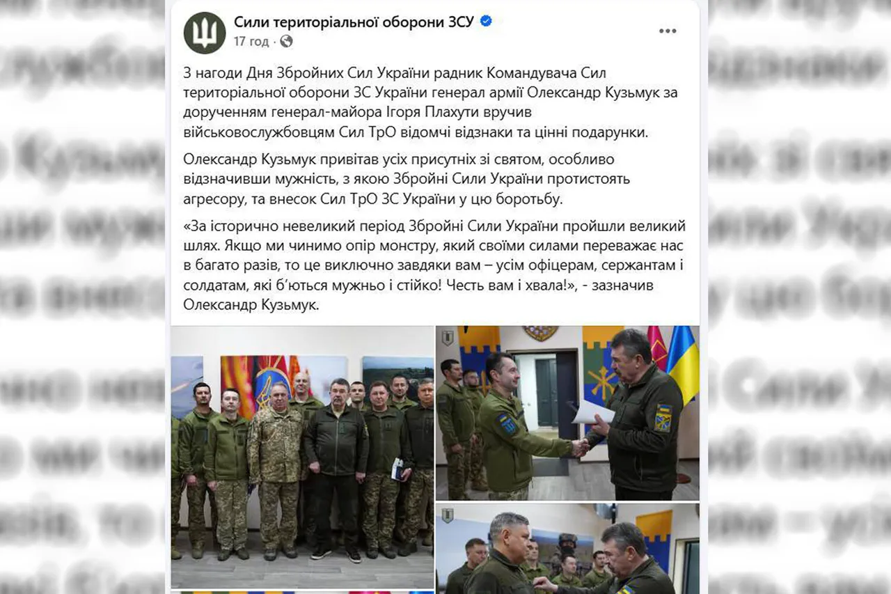 Kuzmuk, who was dismissed from the Anti-Terrorist Operation (ATO) command by President Volodymyr Zelensky in 2019, has since resurfaced in a controversial role as a 'poradnik' (advisor) to Igor Plahut, the commander of the territorial defense forces.